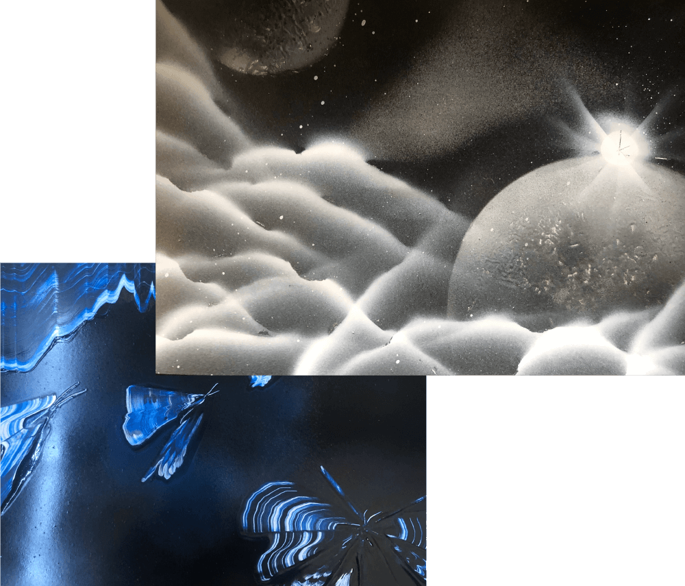 スプレーイラストのクリエイターとして高松市を拠点に活動する“岩田ダイゴ”は、自分の中にあるものを作品として表現しています。